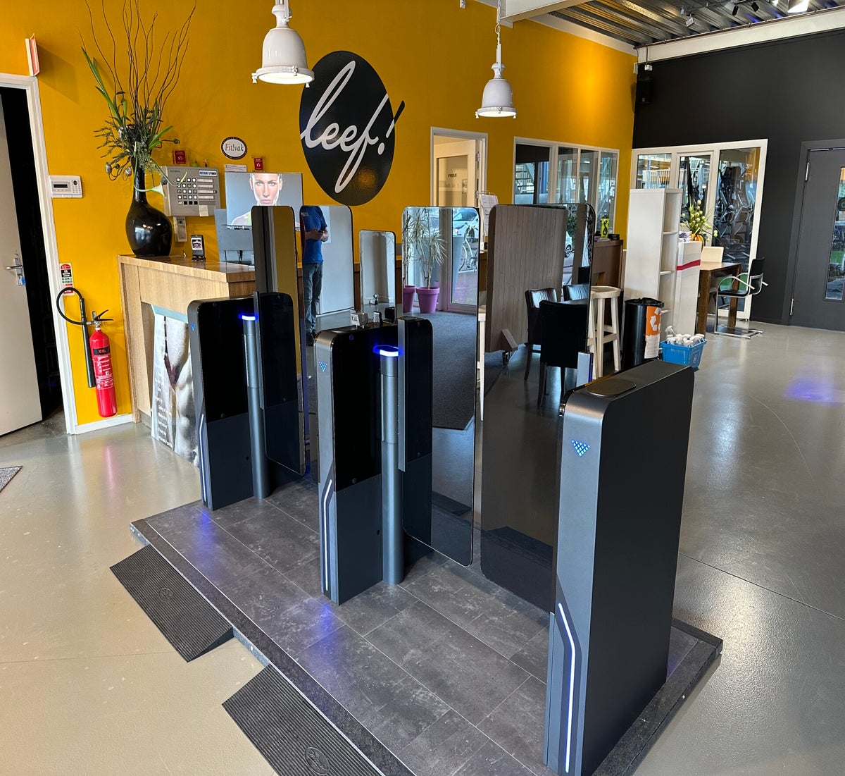 Leef! Vitaliteitsclub in Olst-Wijhe biedt voortaan ruimere openingstijden aan. Onze Force 4 SpeedGate gaat er voor zorgen dat de leden een veilige en prettige toegang krijgen, ook tijdens de onbemande uren. Links gaan leden door de ene poort, gecontroleerd. We hebben daarvoor 2 lezers ingebouwd: RFID en QR. De rechter poort wordt uitsluitend voor uitgang gebruikt en die is voorlopig vrij maar kan altijd worden aangepast met extra lezers.