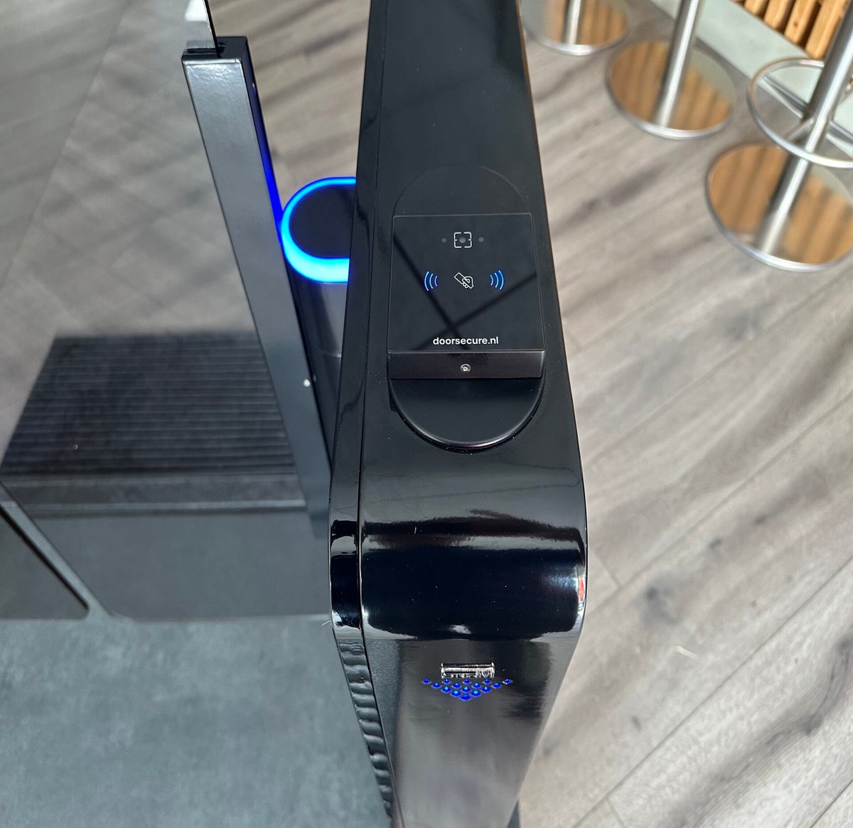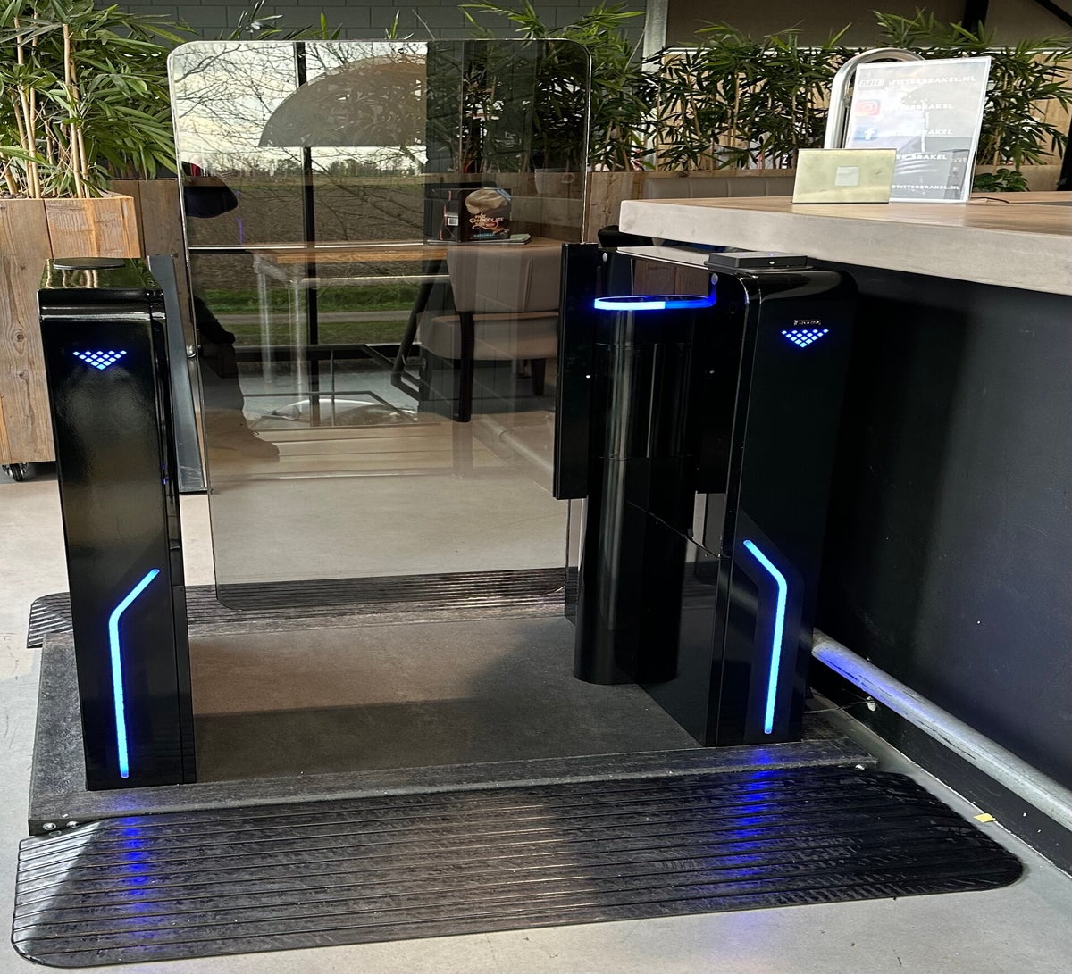 We hebben een Force 2 SpeedGate geplaatst met een ruime doorgang van 90 cm. Ingang gecontroleerd dmv een QR lezer, uitgang vrij. De ruimte naast de poort wordt nog mooi afgewerkt met een mobiele unit.