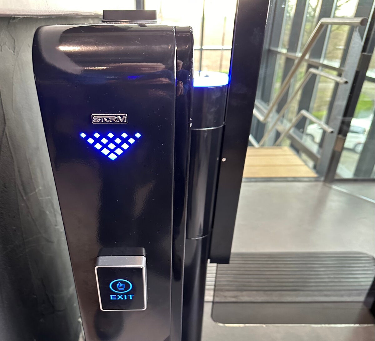 De bestaande enkelvoudige SpeedGate is vervangen voor een dubbele STORM SpeedGate, 1 voor ingang met lezer voor RFID plus QR en de ander poort voor vrije uitgang. Inclusief 6 draadloze afstandsbedieningen zodat de inpandige zorgverleners gemakkelijk hun cliënten kunnen binnen laten.