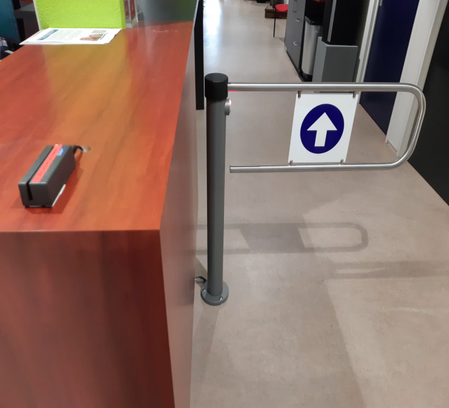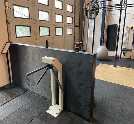 Wij hebben een compacte tourniquet geplaatst en aangesloten op een QR-code lezer van Virtuagym. Voor de uitgang moeten de leden eerst op een voetpedaal drukken.