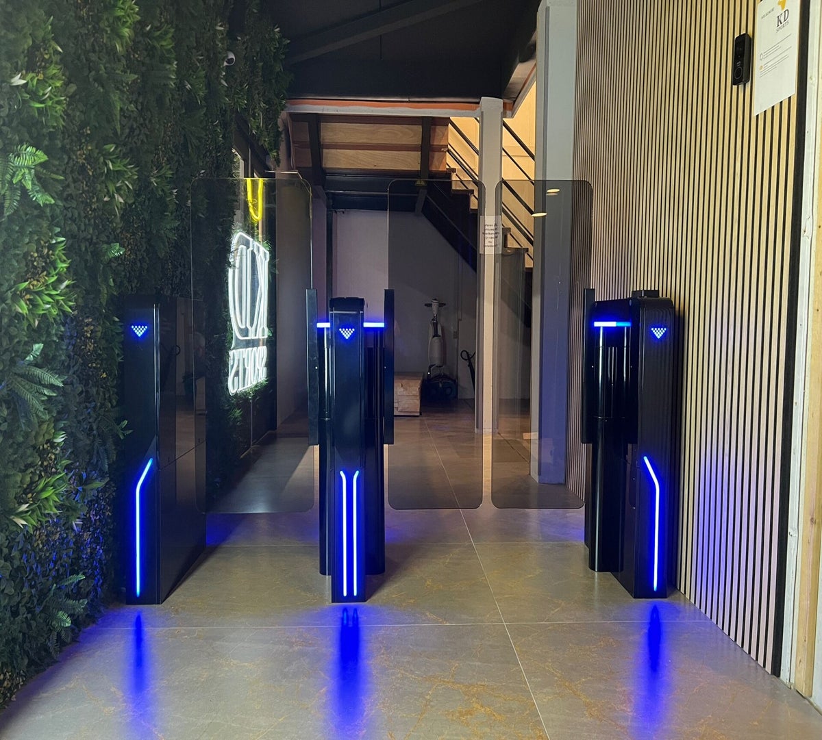 Healthclub 45 is een fraaie moderne club. We hebben de bestaande tourniquet vervangen voor onze STORM Force 1 SpeedGate. Klanten moeten voortaan met hun QR-code in-en uitchecken, we hebben daarvoor 2 lezers opgebouwd. Het geheel is geplaatst op het nieuwe type vloerplaat; metaal en maar 2,5 cm hoog. Geen extra drempelhulpen meer nodig. Het mooie rek aan de zijkant kan in zijn geheel via een geleiderail aan de kant worden geschoven als dat nodig is.